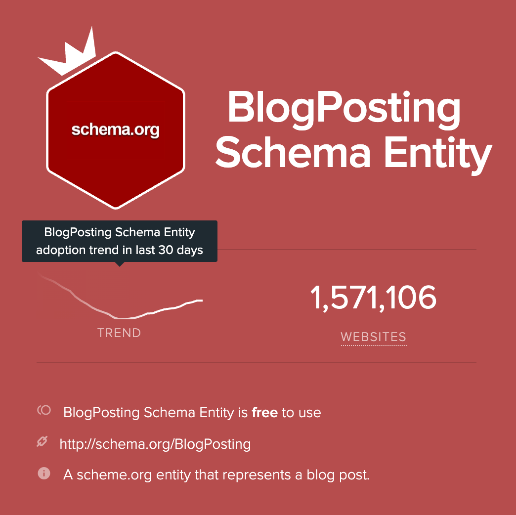 It looks like BlogPosting is the Schema entity of choice. Interestingly enough the BlogPosting Schema Entity has experienced a significant uptick in adoption during the COVID-19 quarantines.